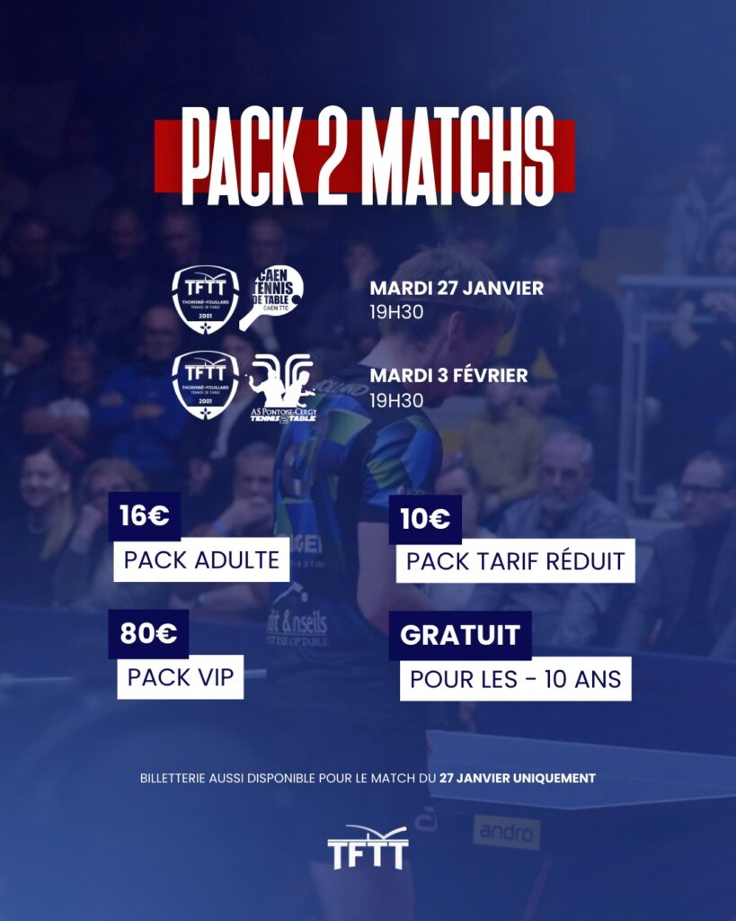 Pour l’occasion, le TFTT vous propose un offre 𝑷𝑨𝑪𝑲 𝟐 𝑴𝑨𝑻𝑪𝑯𝑺 :